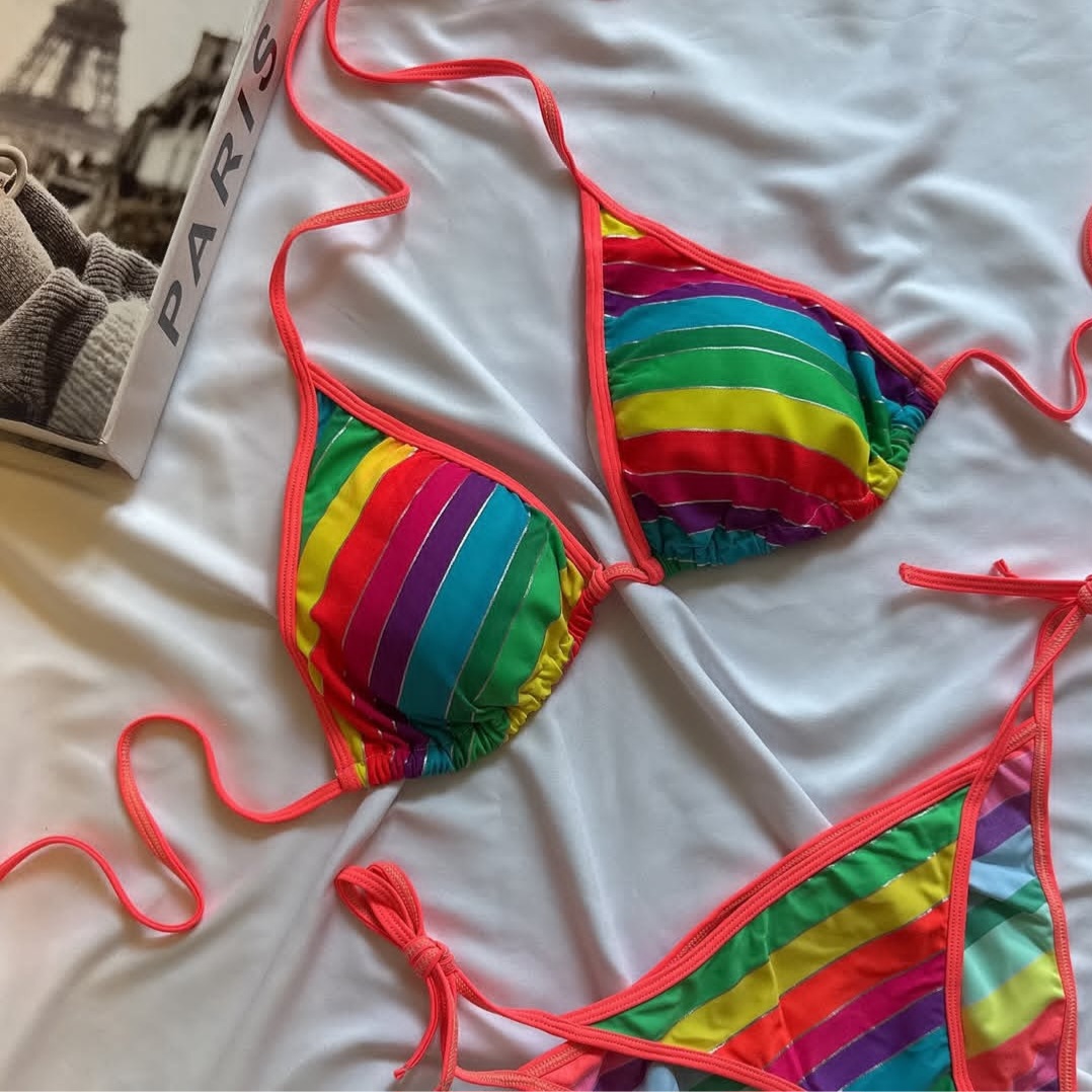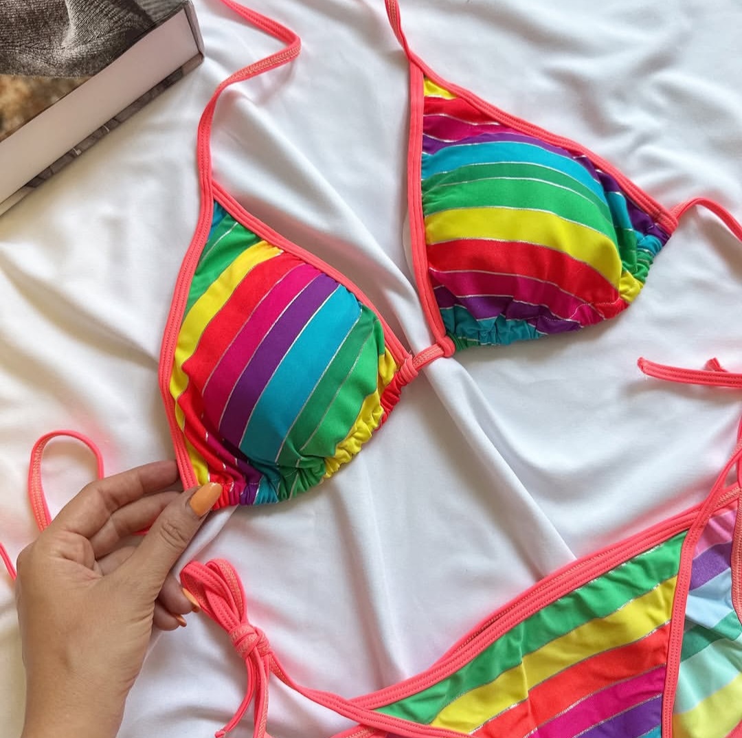 بیکینی گره ای کاپدار طرح رنگین کمان