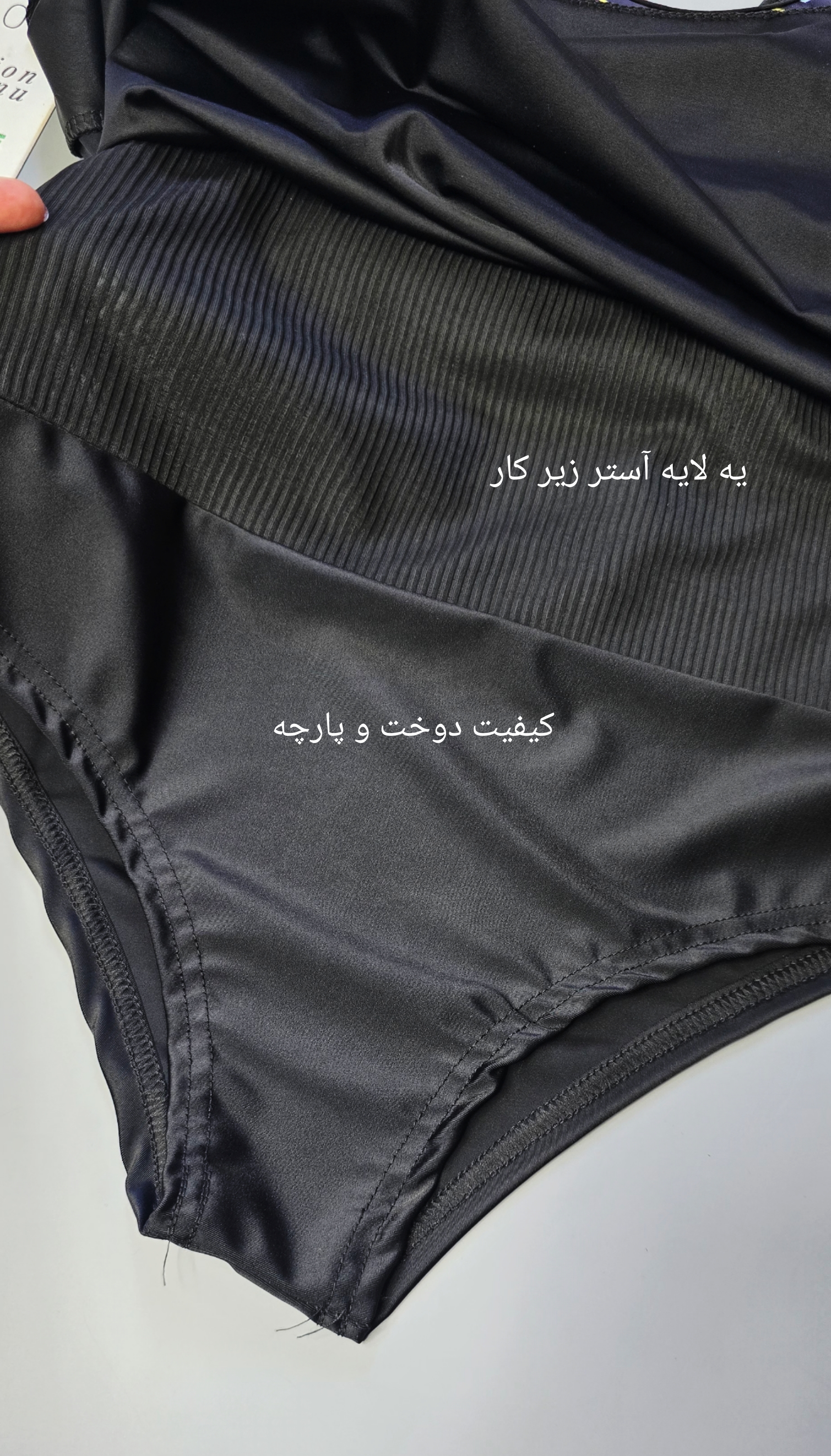 قسمت پشت کاپ و ناحیه زیر دامن آستردوزی کامل شده که پوشش دولایه ایجاد میکند باعث مقاومت بیشتر مایو شده و از حساسیت جلوگیری میکند