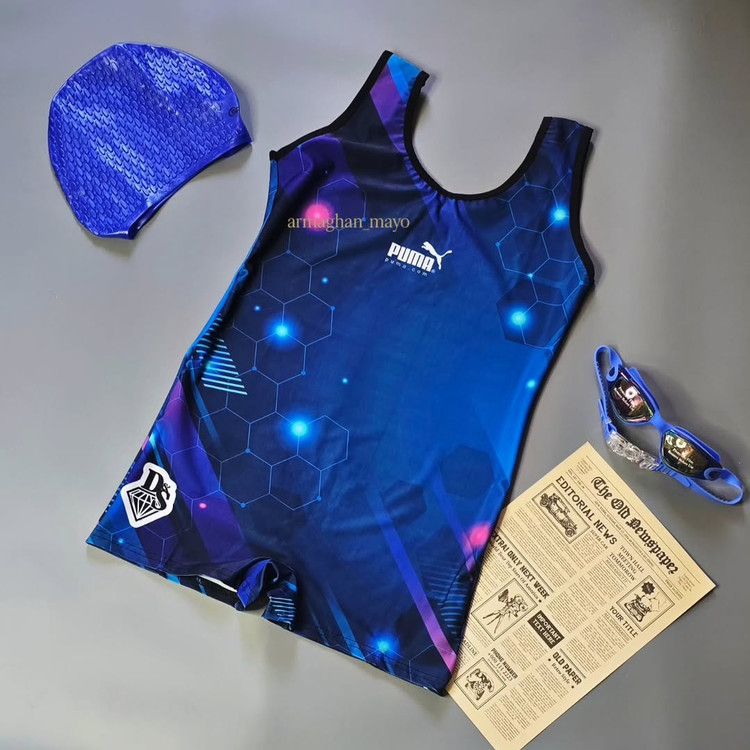 مایو پادار آبی کهکشانی با جنس پارچه محکم و فوقالعاده که با یه عینک شنا آبی و کلاه سیلیکونی آبی ست شده. فریسایز تا ۴۴_۴۶ دورسینه و باسن عادی ۸۰ سانت با کشسانی تا ۱۱۰ سانت کشسانی دارد.