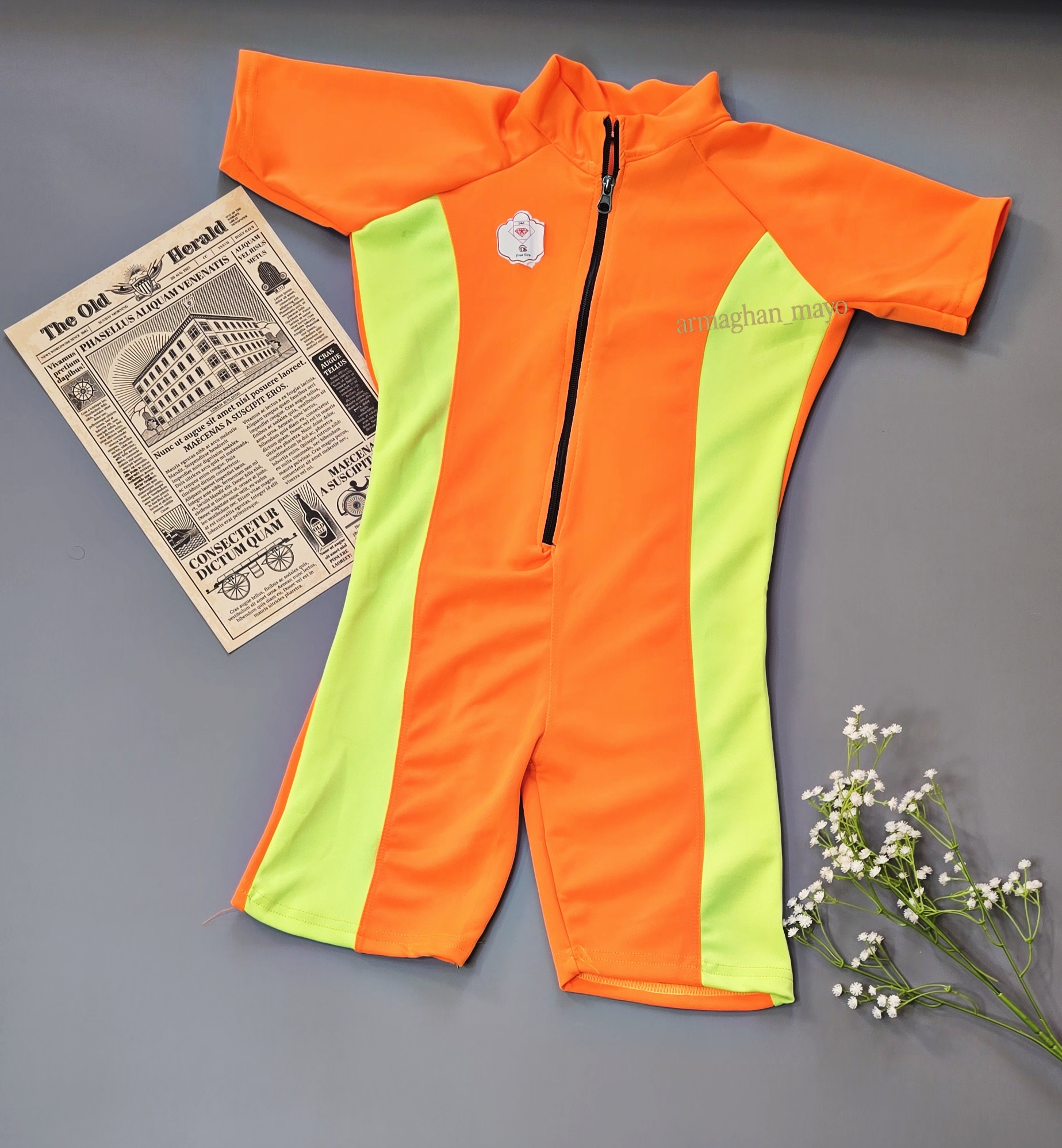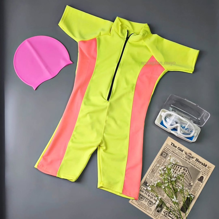قد کار ۶۸ و عرض کار ۳۴. این مایو شامل زیپ جلوی راحت و برای پوشش کامل مناسب سنین ۸_ ۹ تا ۱۴_۱۵ سال است.