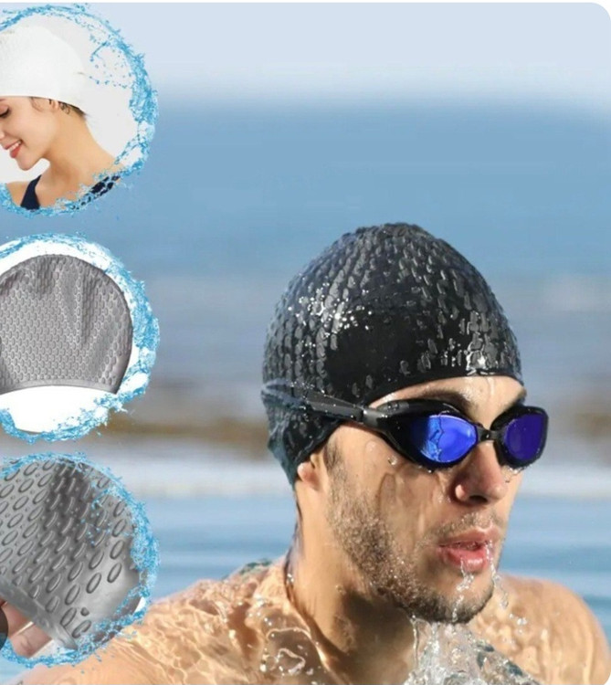 کلاه شنا وارداتی پفکی سیلیکونی ضدآب مناسب برای خانم ها و آقایان کد۱۴۰