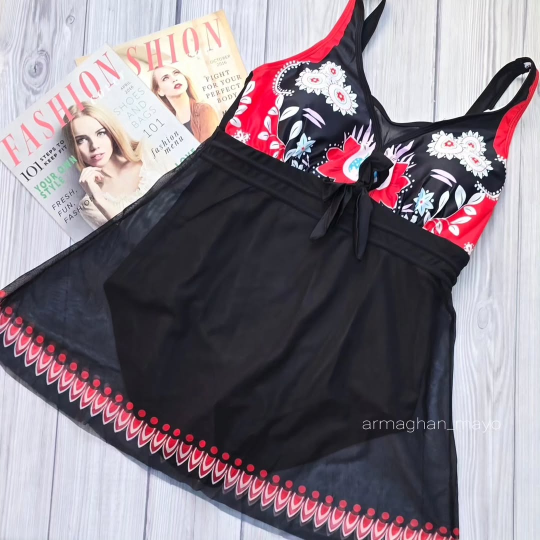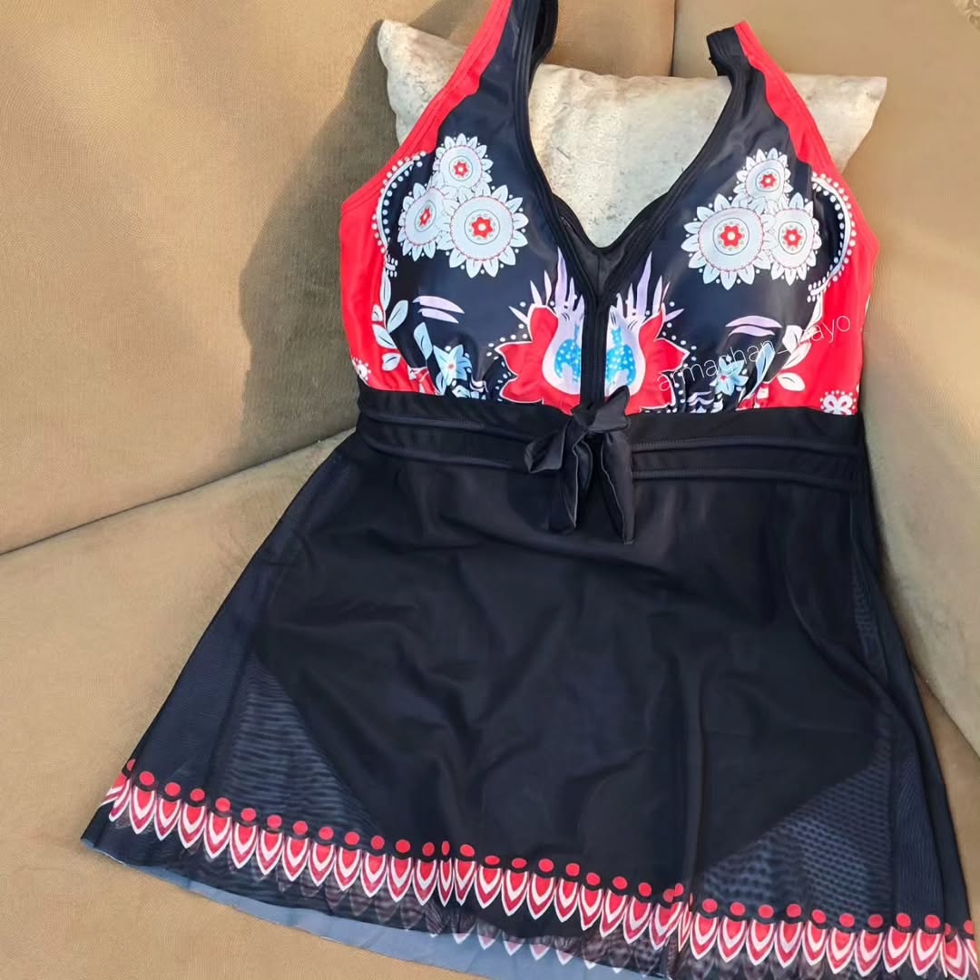 ✔️کاپ داخلی باعث فیکس شدن بالاتنه شده و دامن نازک آن پوششی بر روی شکم و باسن دارد