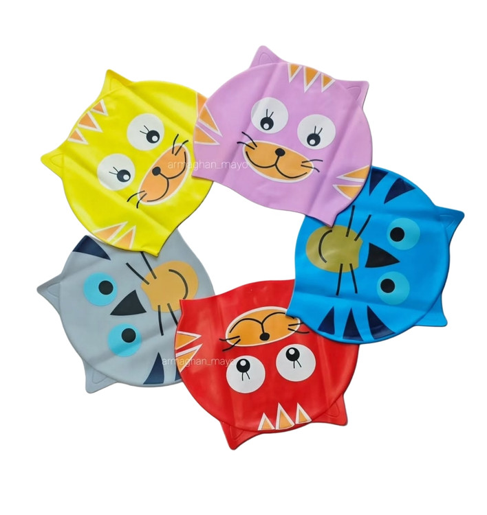 کلاه شنا بچگانه وارداتی ضدآب و ضد حساسیت با رنگهای شاد و طرح های موردعلاقه بچه ها کشسانی کار بسیارعالی مناسب برای سنین مختلف دختروپسر