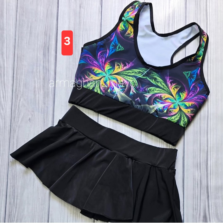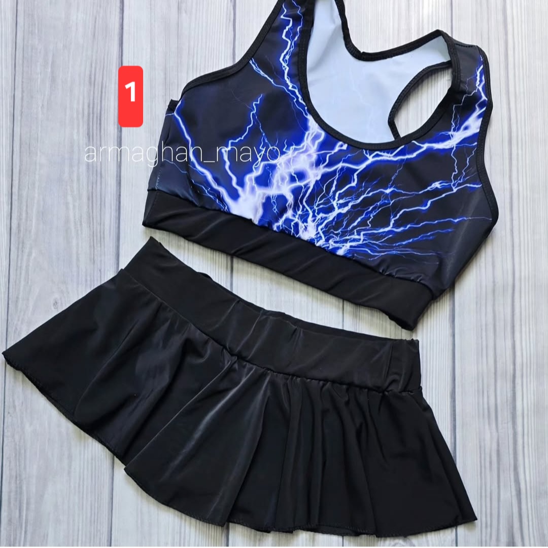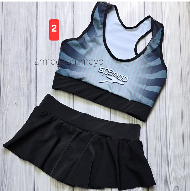 ✔️مایو دوتیکه دامنی طرحدار بدون کاپ، انتخابی عالی برای دختران ۱۰ سال به بالا و خانمهای جوان است.